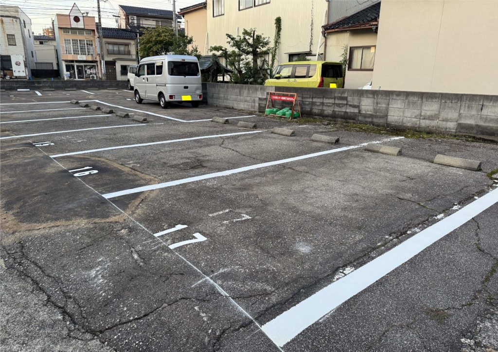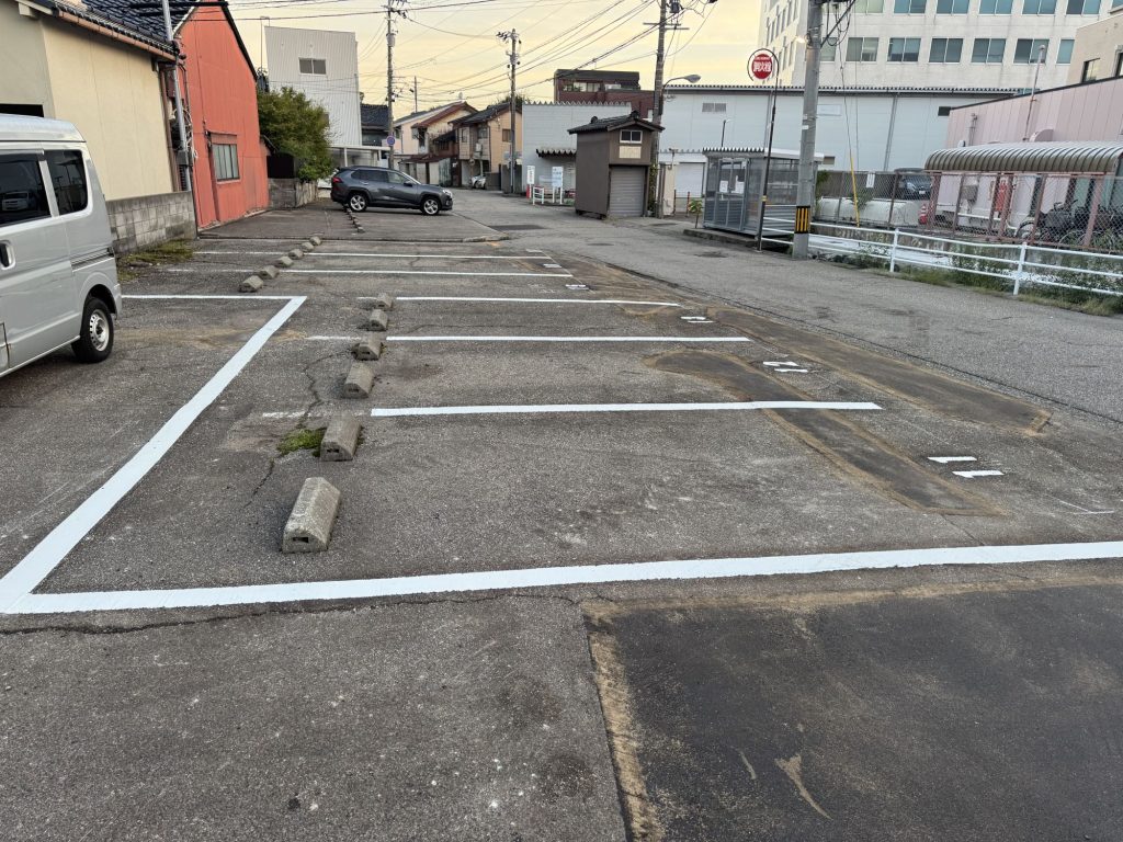 益進から皆様へ2025.09.22 【金沢三社町月極め駐車場】の舗装、白線、駐車番号を更新しました。 昨日、駐車場内の舗装工事、白線ライン引き、駐車番号の表示等の工事が完了しました。 駐車場の概要等につきましては、下記リンクをご参照ください。 金沢三社町月極め駐車場 PREV BACK TO ALL LIST NEXT