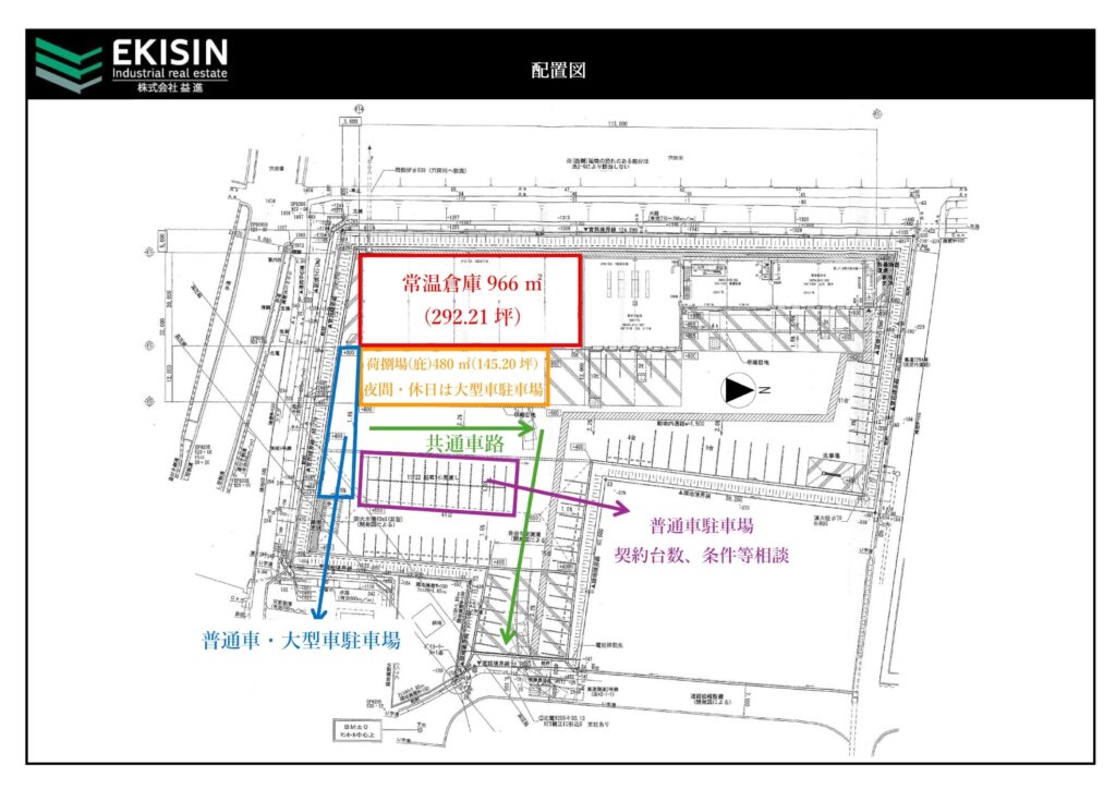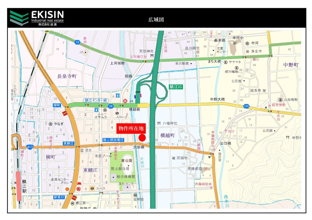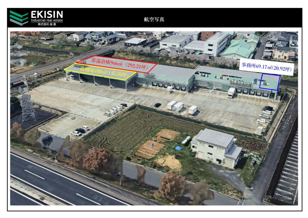 本物件は北陸自動車道【鯖江IC】から約1km、ハピラインふくい線【鯖江駅】から約1.5kmに位置し、高床式常温倉庫292坪、荷捌き場(庇)145坪、事務所20坪、大型車両・普通乗用車専用駐車場がございます。