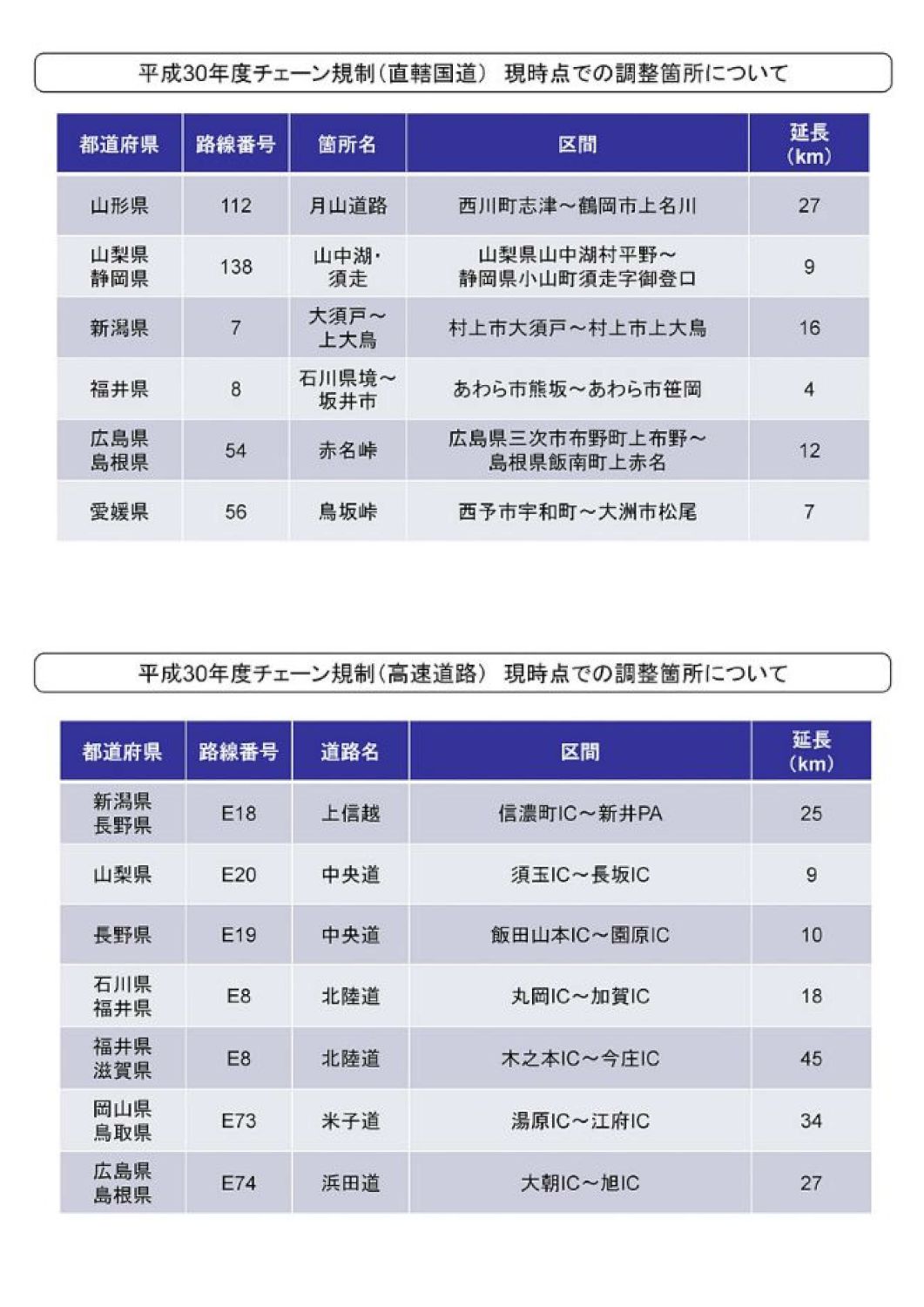 国土交通省と警察庁は12月10日、大雪による車の立ち往生防止対策として今冬からタイヤチェーンの装着を義務付ける対象に、高速道路と国道の計13区間を指定すると発表しました。(YAHOO! JAPANニュースより)