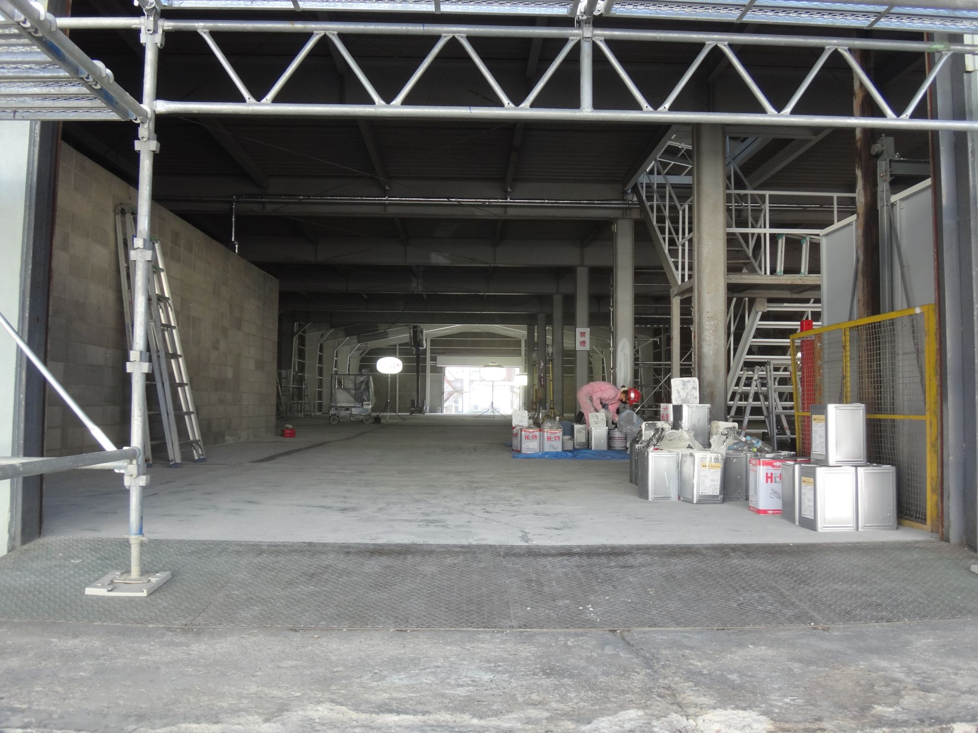 金沢増泉貸倉庫は本日から足場が架かっております。現在も床や梁などの塗装工事の他、プラットホームの一部解体工事、外壁工事などが行われます。