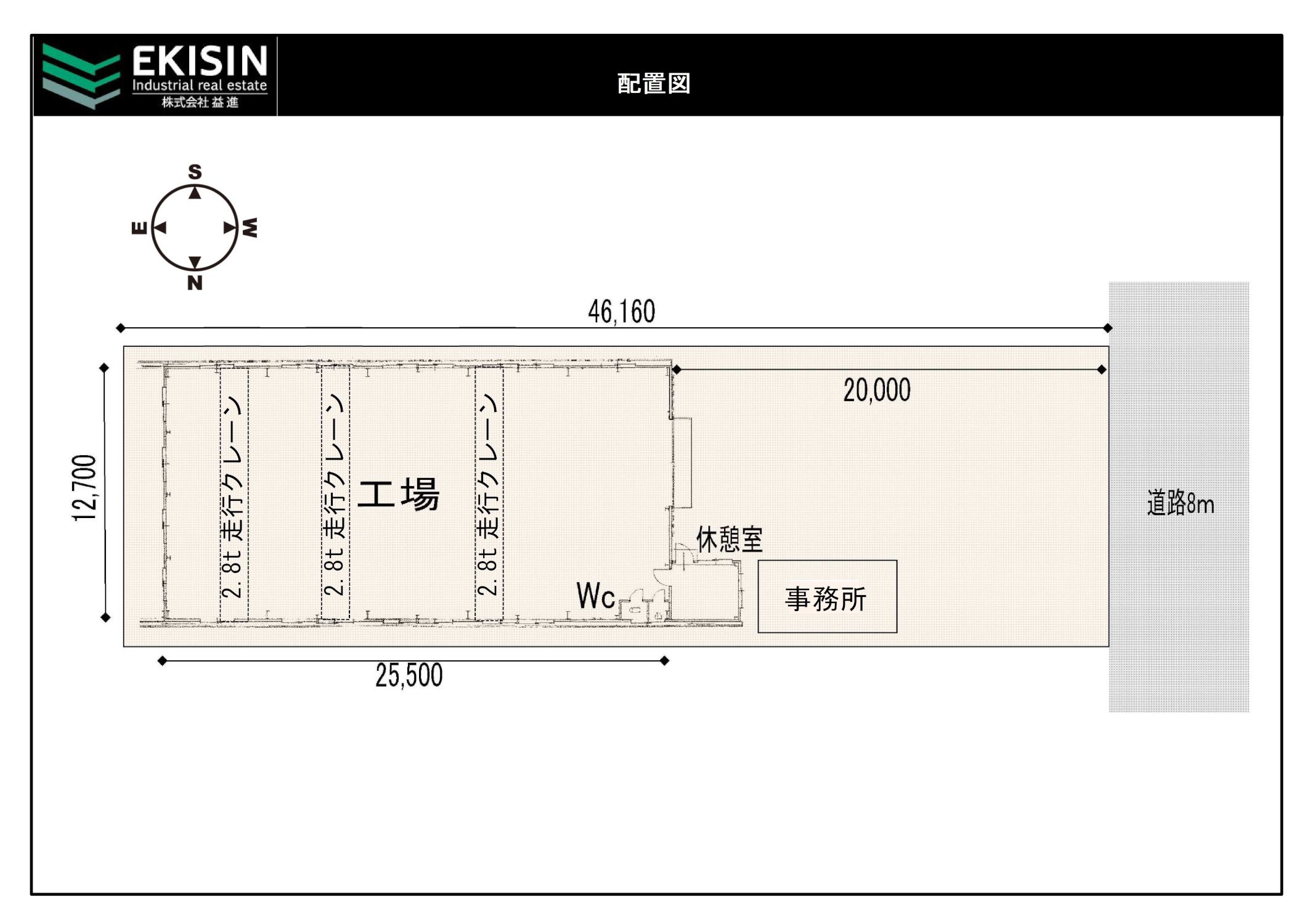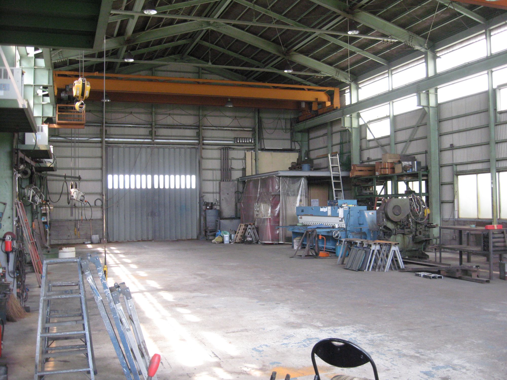 工場面積は101坪、別棟事務所あり。工場内に2.8t走行クレーン3基あり。